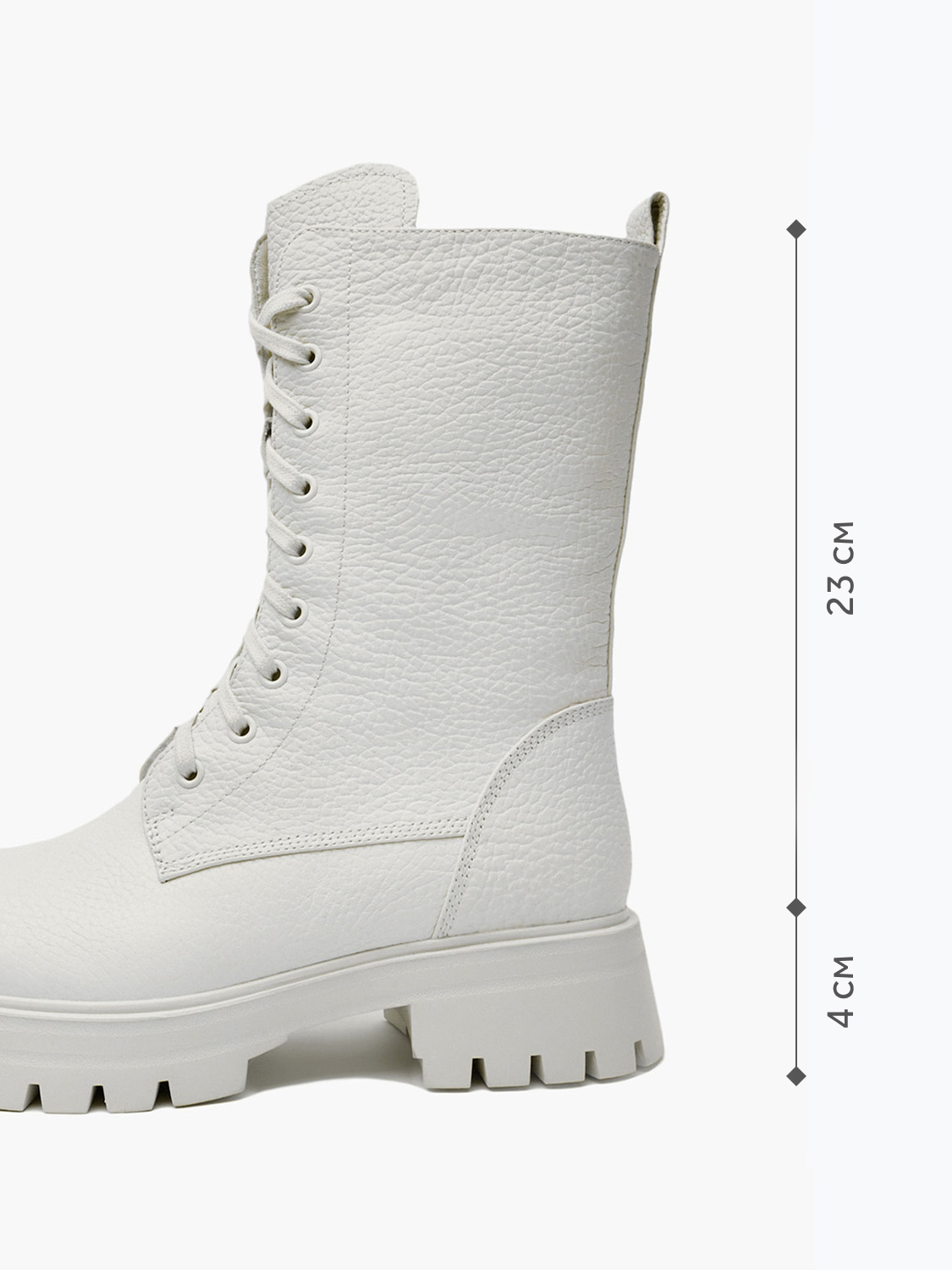 - Высокие женские ботинки станут стильным дополнением к любому образу. Верх обуви изготовлен из натуральной кожи, а подкладка - из натурального меха с дополнительным утеплением пятки для комфортных зимних прогулок при температуре от -5 до -20 градусов. Объемная подошва высотой 4 см из резины с рельефной поверхностью обеспечивает повышенную устойчивость на скользких дорогах. Аккуратная шнуровка позволит надежно зафиксировать ногу во время ходьбы. Ботинки сочетаются как с джинсами и брюками, так и с юбками и платьями. Доступны в молочном и черном цвете.