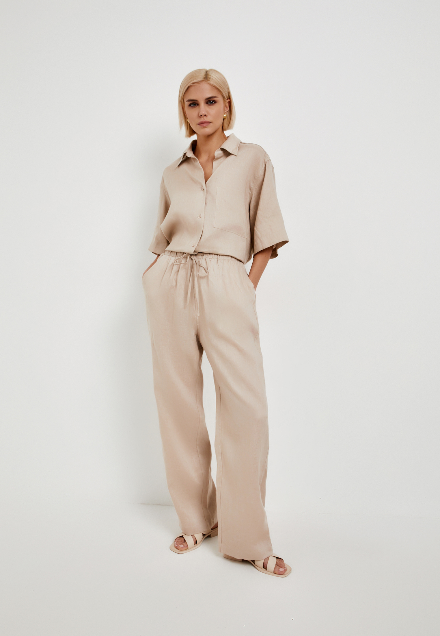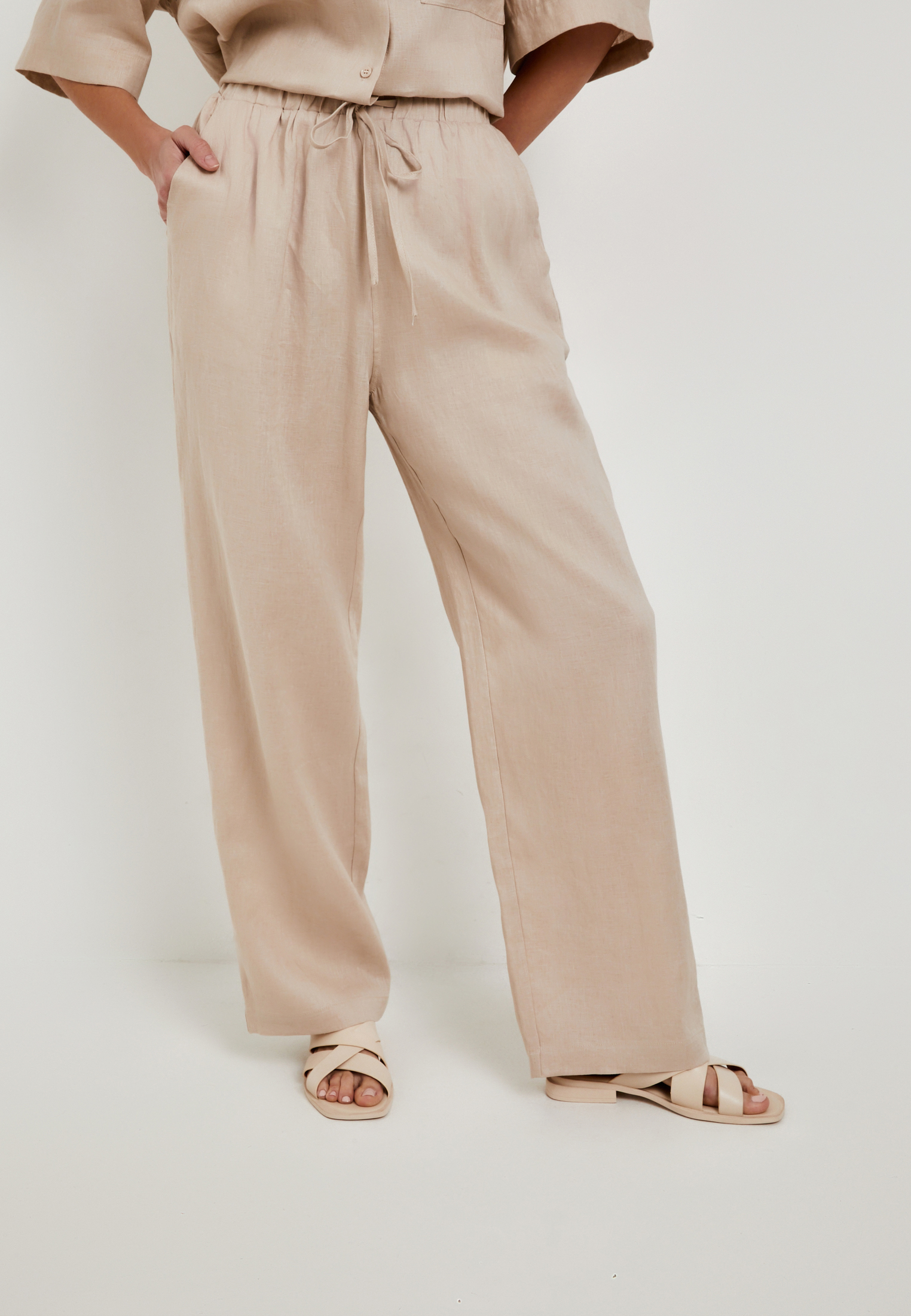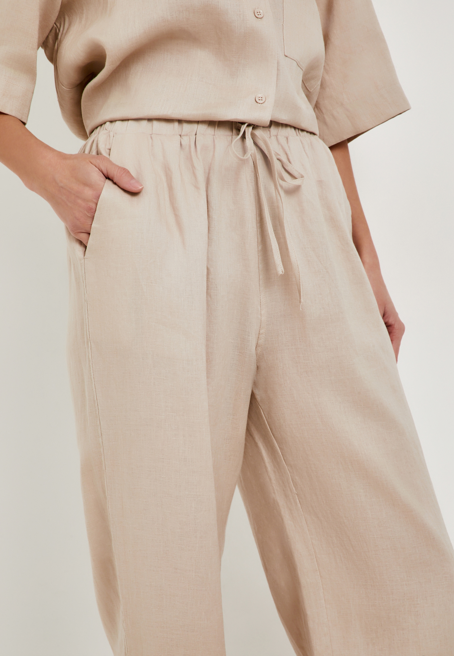 - Свободные широкие женские брюки Mascotte из 100% натурального льна – идеальный выбор для создания стильного и комфортного образа. Эта длинная модель в бежевом цвете отличается превосходной воздухопроницаемостью, обеспечивая комфорт в течение всего дня. Эластичный пояс с регулируемым шнуром гарантирует идеальную посадку по фигуре. Брюки дополнены удобными карманами в боковых швах. Льняные брюки от Mascotte – это сочетание безупречного качества, комфорта и актуального дизайна. На модели размер S. Параметры модели: 81-61-92, рост 175.
