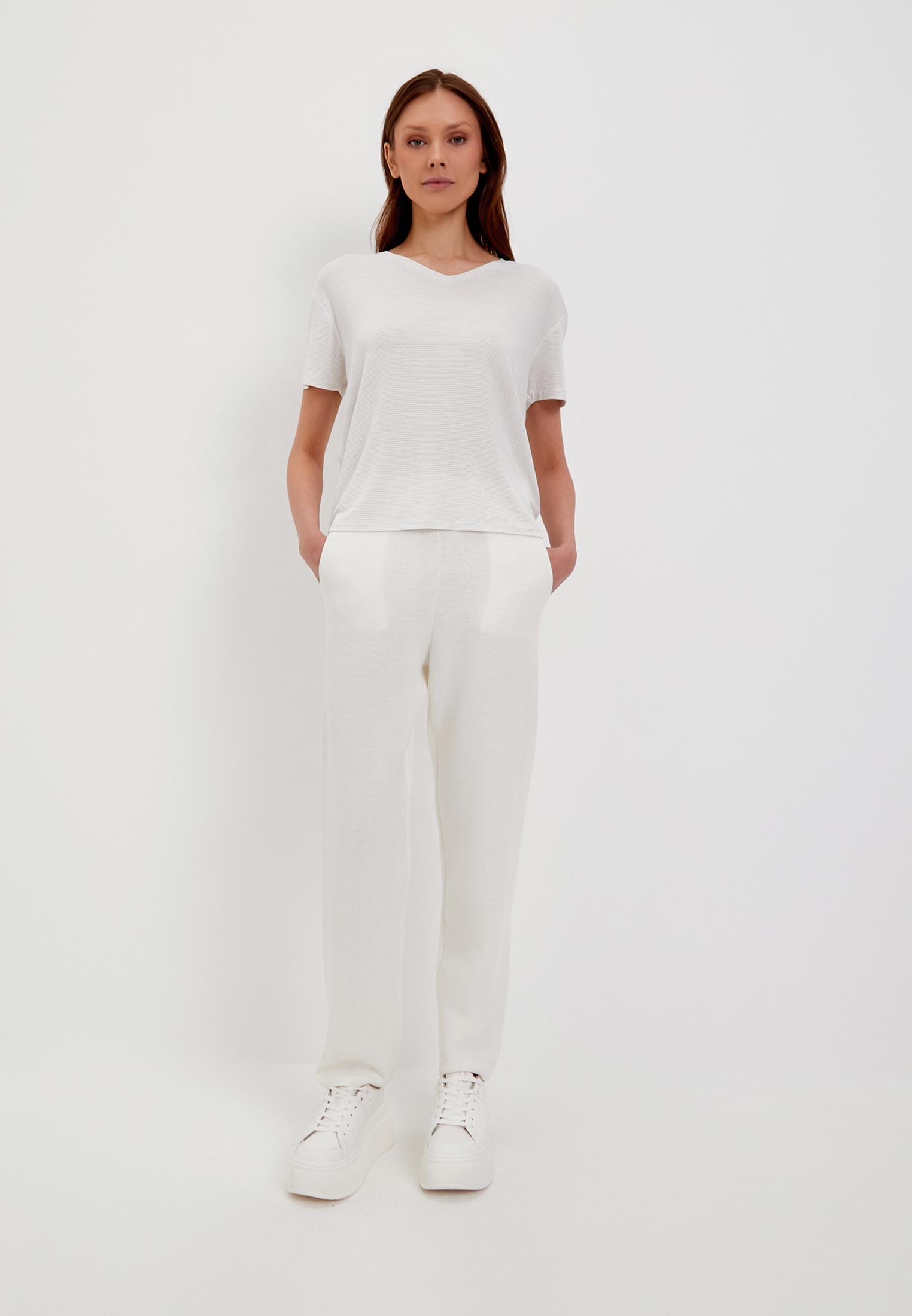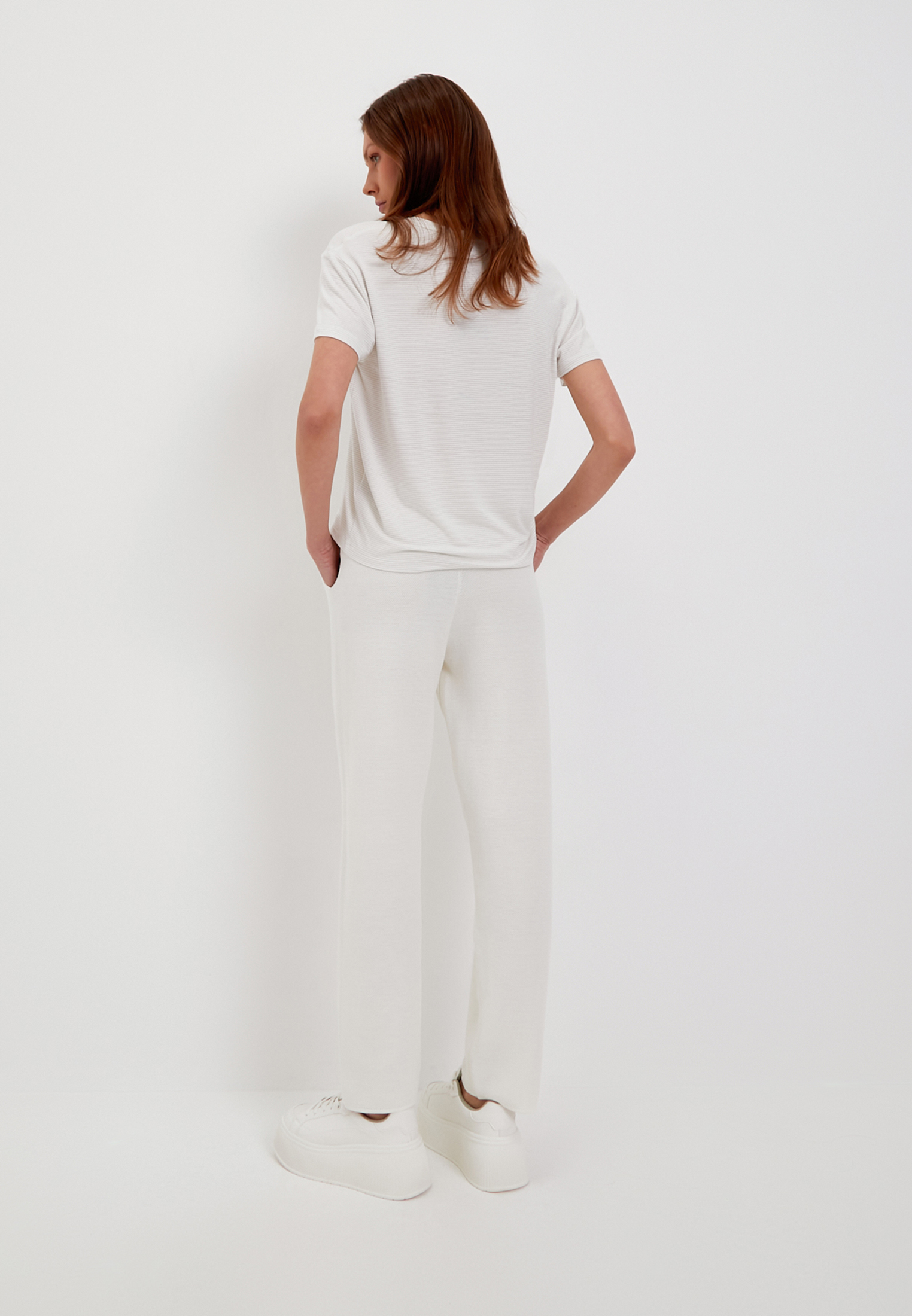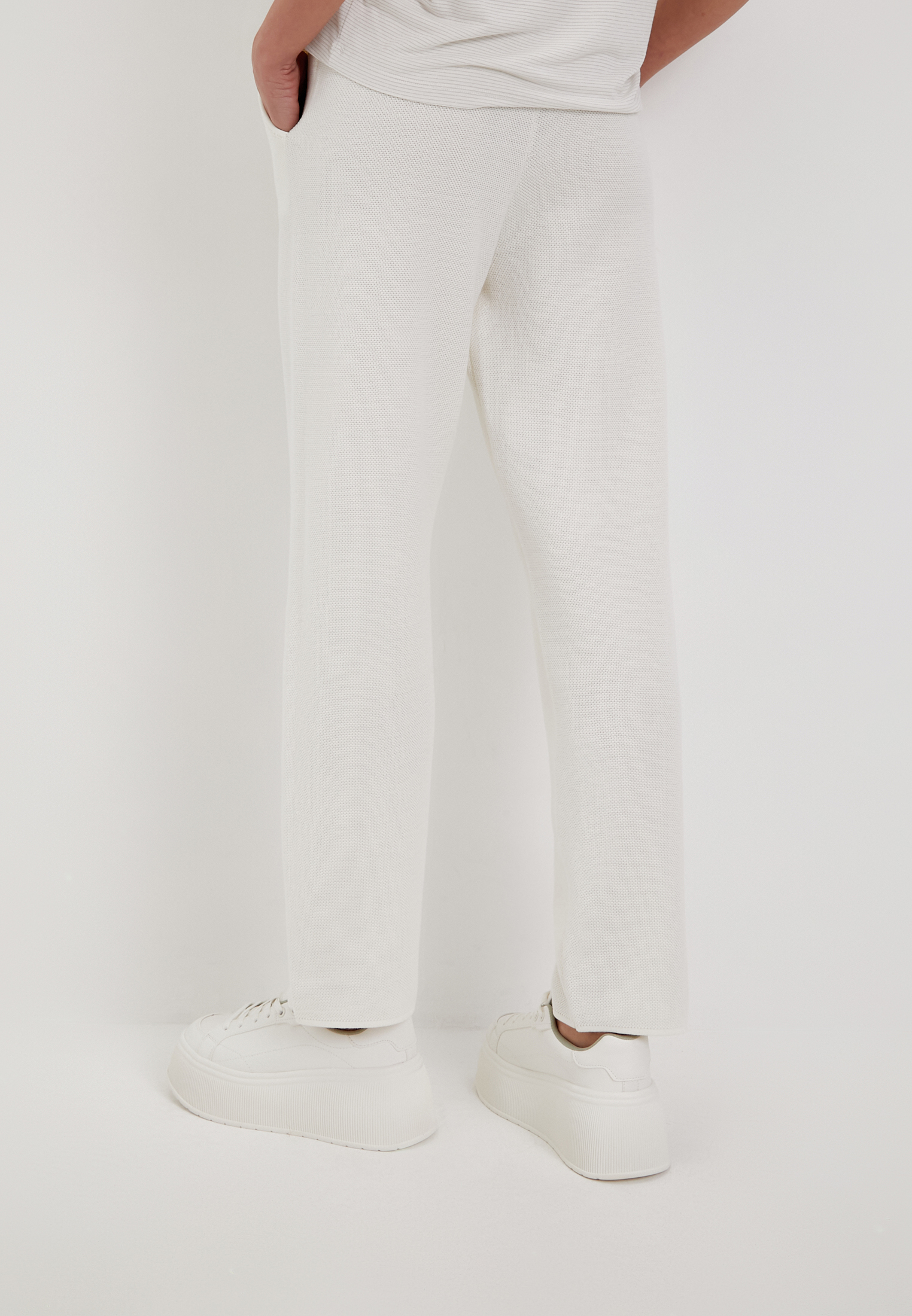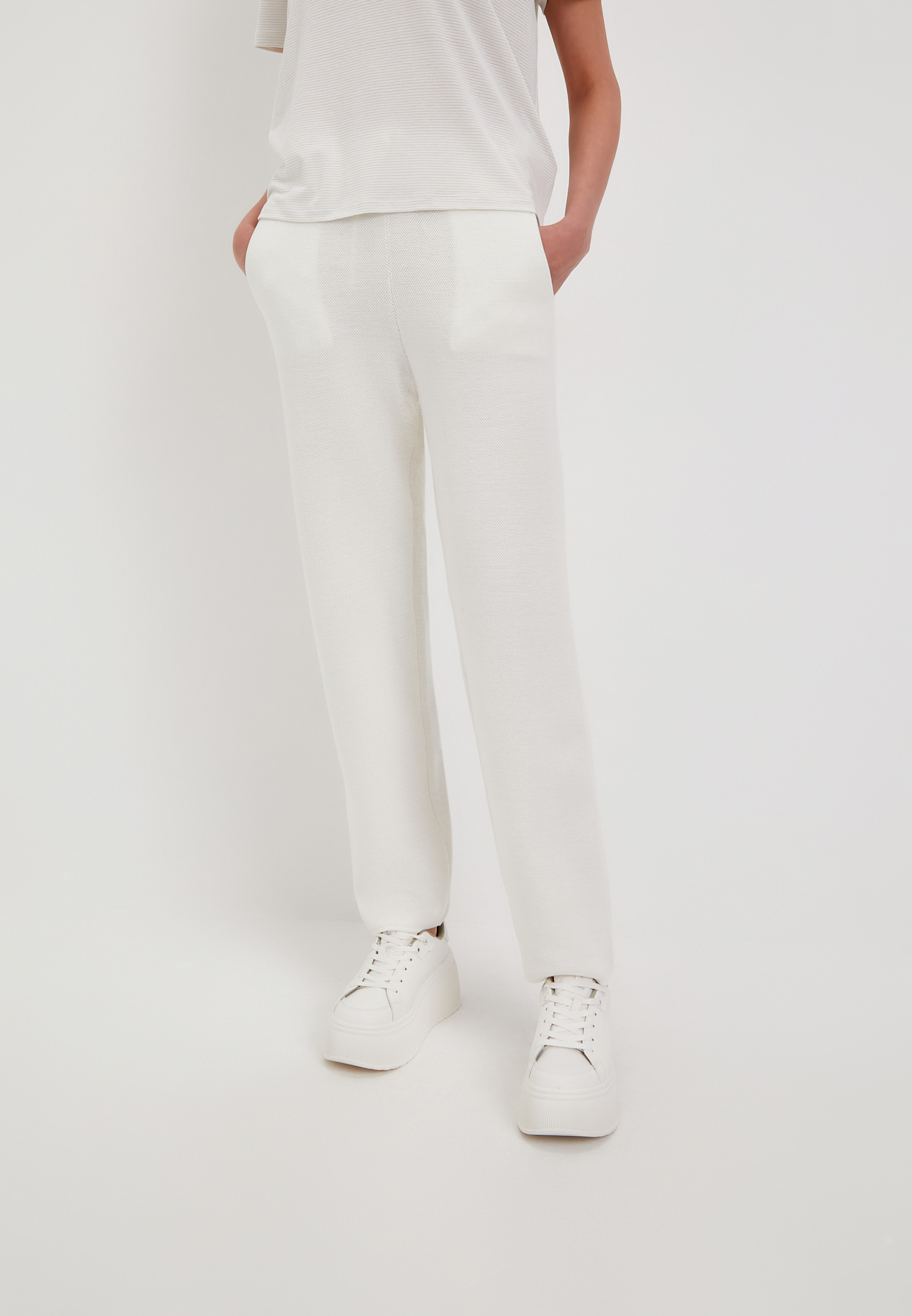 - Трикотажные брюки с карманами выполнены из высококачественной пряжи с составом: полиэстер 50%, нейлон 20% и акрил 20%. Материал обладает рельефным узором, напоминающим вязку Пике. Он приятен к телу, отлично пропускает воздух и прост в уходе. Высокая упругость полотна позволяет брюкам восстанавливать свою форму после растяжения, а их приятная к телу фактура и отличная воздухопроницаемость делают их идеальными для повседневного аутфита и прогулок в прохладные летние вечера. На модели: размер S, параметры 84-60-88, рост 175.