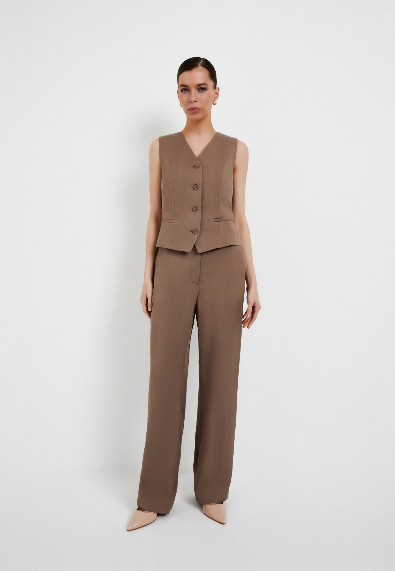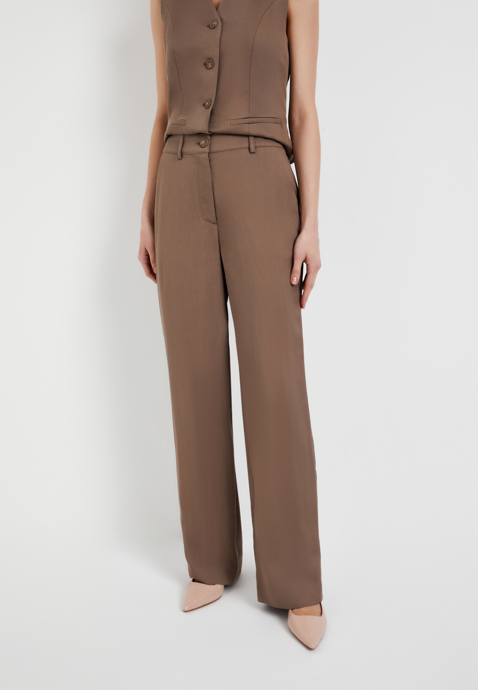 - Полуприлегающие прямые женские брюки от Mascotte – идеальный выбор для создания элегантного и комфортного образа. Выполненные из премиальной ткани, состоящей на 64% из тенселя, 30% вискозы и 6% нейлона, эти длинные брюки отличаются исключительной мягкостью, воздухопроницаемостью и долговечностью. Лёгкий и приятный на ощупь материал обеспечивает комфорт в течение всего дня. Светлый терракотовый цвет добавляет образу изысканности и универсальности, позволяя легко сочетать брюки с различными элементами гардероба. Детали, такие как удобные карманы в боковом шве и элегантные прорезные карманы сзади, делают модель не только стильной, но и функциональной. Застежка на молнию и пуговицу гарантирует надежную посадку. Подкладка из 80% полиэстера и 20% хлопка обеспечивает дополнительный комфорт и улучшает посадку по фигуре. Брюки идеально подойдут для создания как деловых, так и повседневных образов. На модели размер S. Параметры модели: 85-61-91, рост 173.