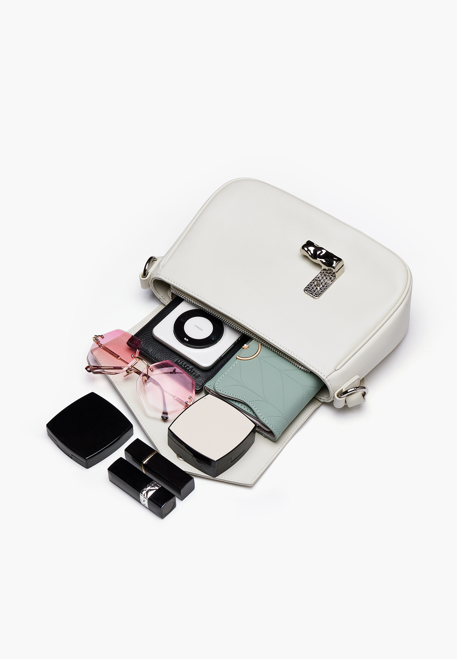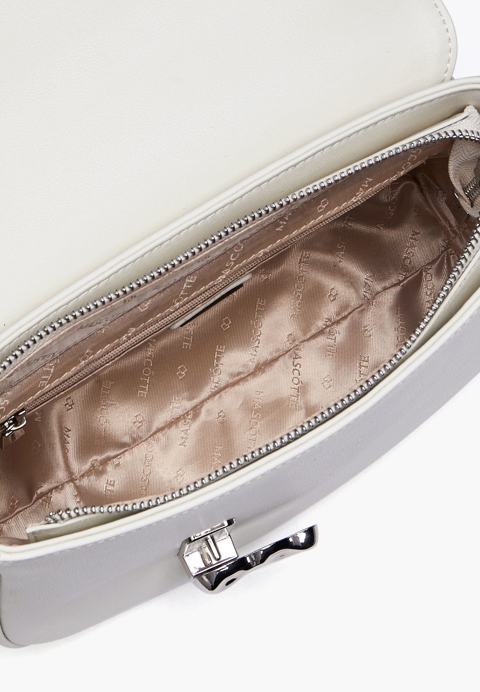 - Изящная наплечная сумка Mascotte белого цвета станет стильным акцентом вашего образа. Выполненная из натуральной кожи высокого качества, она отличается не только превосходным внешним видом, но и долговечностью. Внутри сумка оснащена прочной текстильной подкладкой, а также имеет внутренний карман на молнии для хранения важных мелочей и удобный карман для мобильного телефона. Серебристая фурнитура и надежный замок подчеркивают изысканность модели. Одно основное отделение позволяет удобно разместить все необходимое. Сумка дополнена элегантным ремнем длиной 120 см, который обеспечивает комфортное ношение на плече. Размеры сумки: высота 19 см, длина 25 см, ширина 9 см.