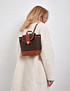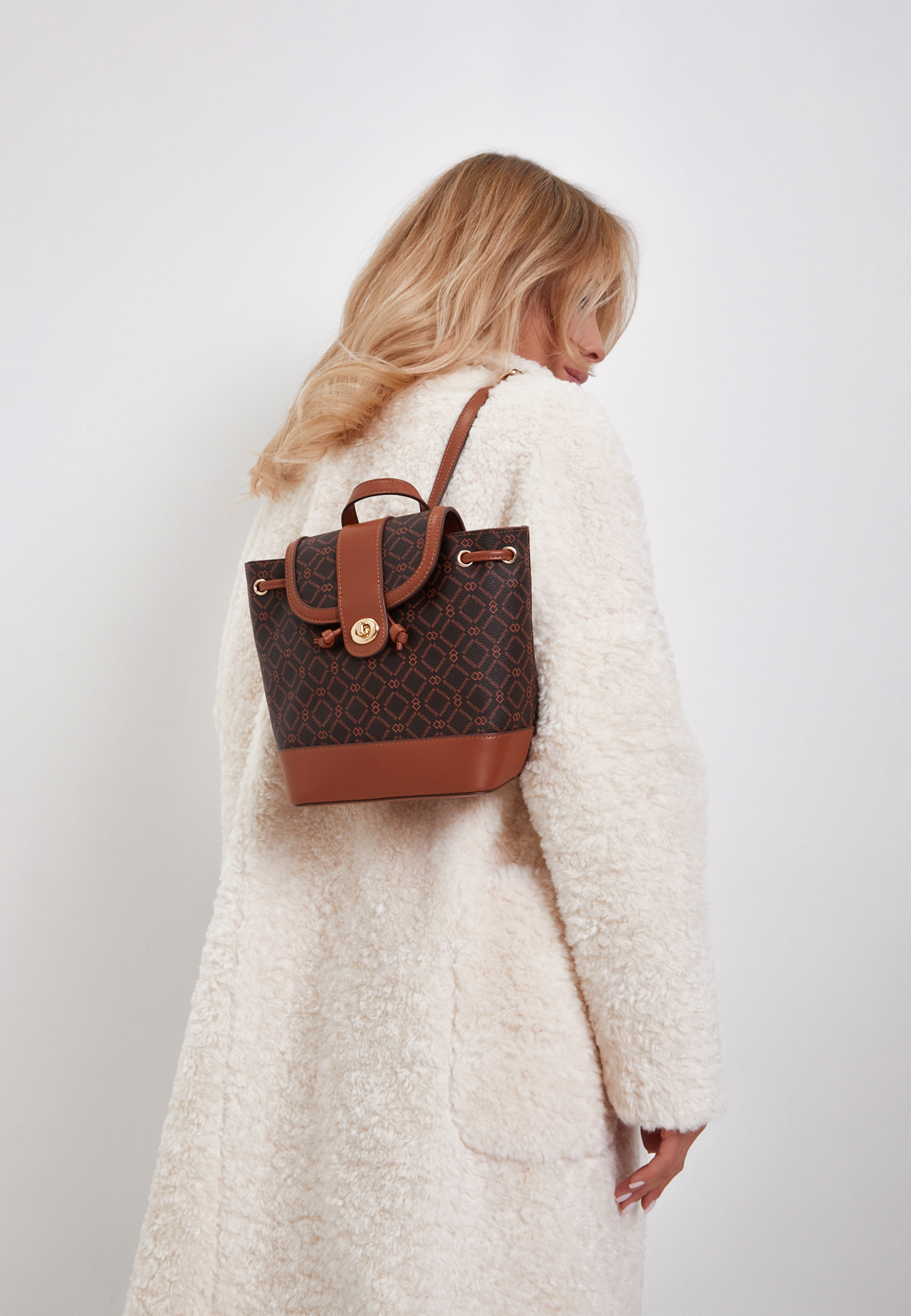 - Небольшой, но вместительный женский рюкзак, который станет вашим идеальным спутником на каждый день. Изготовлен из экокожи с фирменным принтом и элегантной контрастной окантовкой. Основное отделение затягивается шнурком и закрывается замком, обеспечивая сохранность вещей. Внутри рюкзака предусмотрены внутренний карман на молнии и открытый для удобного хранения мелочей. Размеры рюкзака составляют 21 см в высоту, 17,5 см в длину и 11,5 см в ширину, что делает его удобным и практичным. Представлен в коричневом цвете.