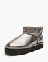 - Укороченная модель женских угг - идеальный вариант обуви на зимний период с температурным режимом -5/-20. Подклад пары выполнен из натурального меха, а стелька - из шерсти. Облегченная подошва высотой 3 см обладает повышенной устойчивостью к трению. Представлены в черной серебристой коже и велюре сиреневого и оттенка хаки на выбор.